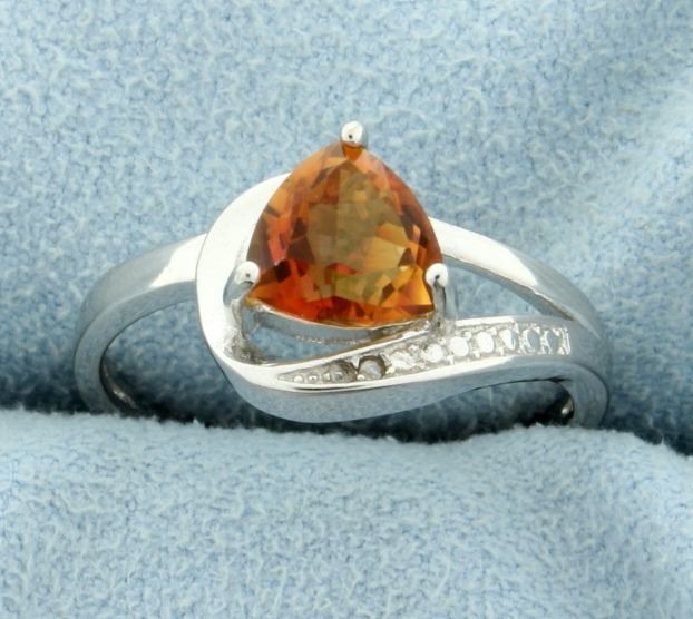 The 1.2ct trillion cut gemstone and diamonds are set in platinum over sterling silver. Size 7 1/2 2.3g