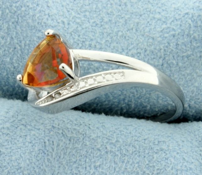 The 1.2ct trillion cut gemstone and diamonds are set in platinum over sterling silver. Size 7 1/2 2.3g