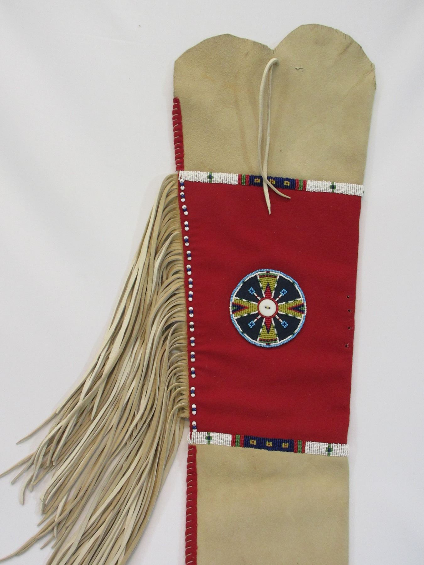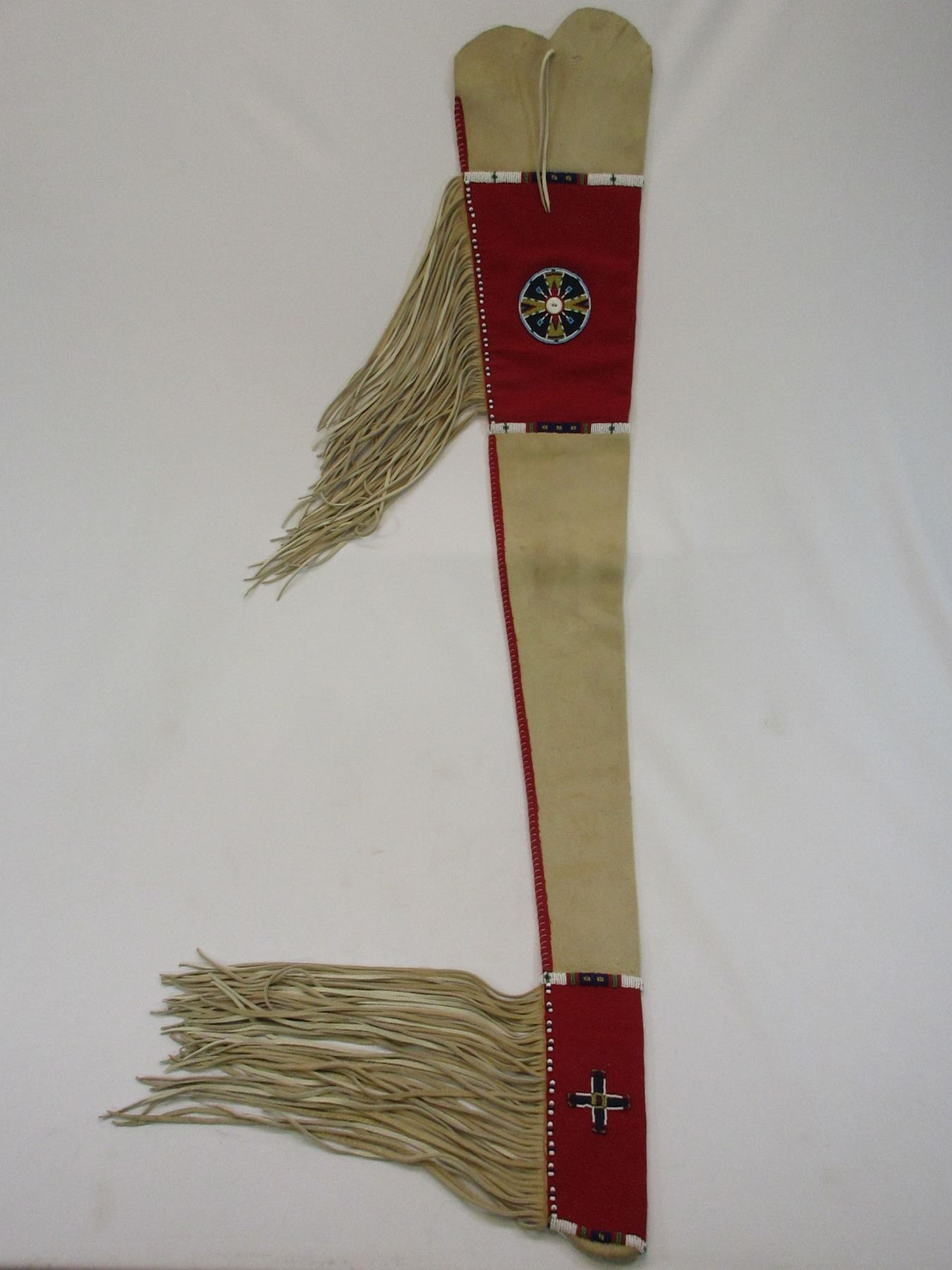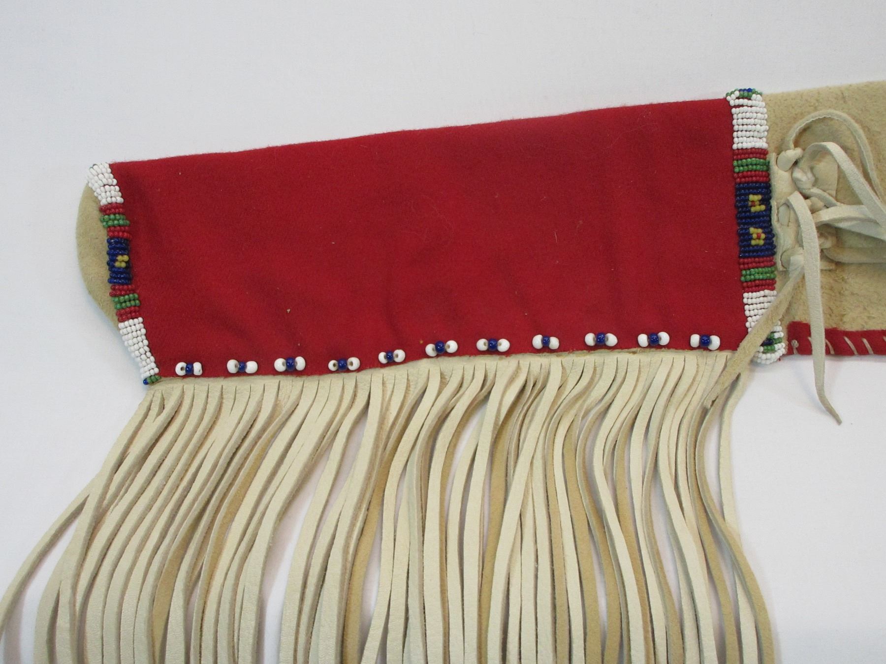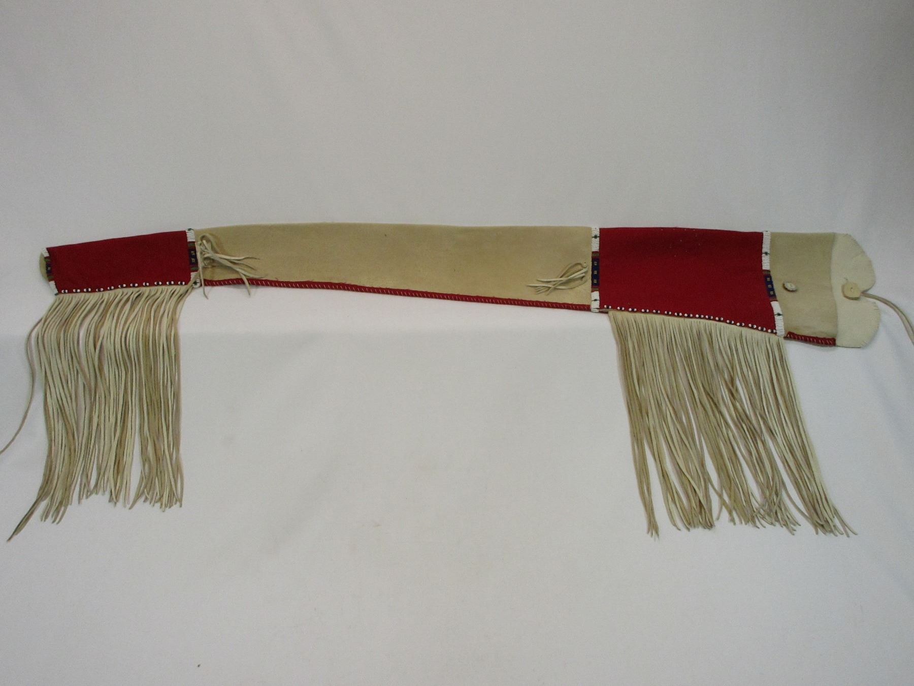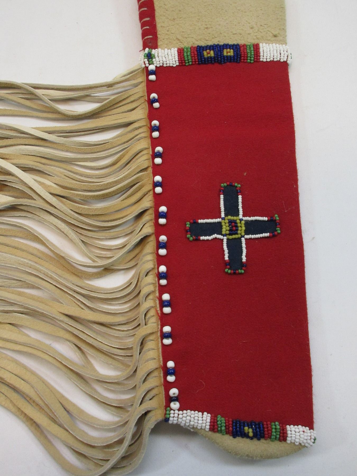 Contemporary Beaded and Fringed Native Scabbard- Cloth and Deer Antler- Flap- 45"L X 9" at Widest Part