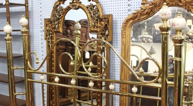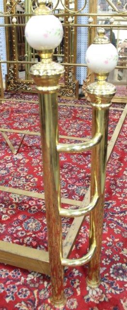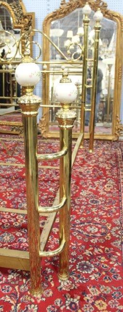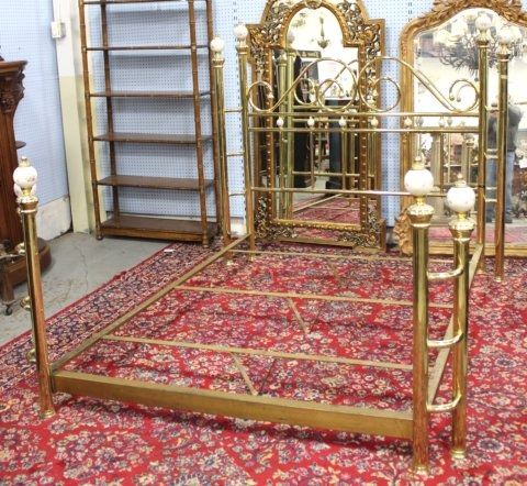 Adorned with porcelain balls. By Wesley Allen Inc., LA, Ca. Approx. 63" H headboard x 69" across, 42" H footboard.