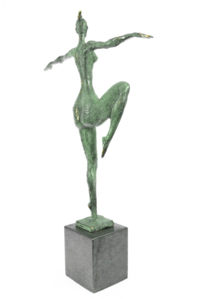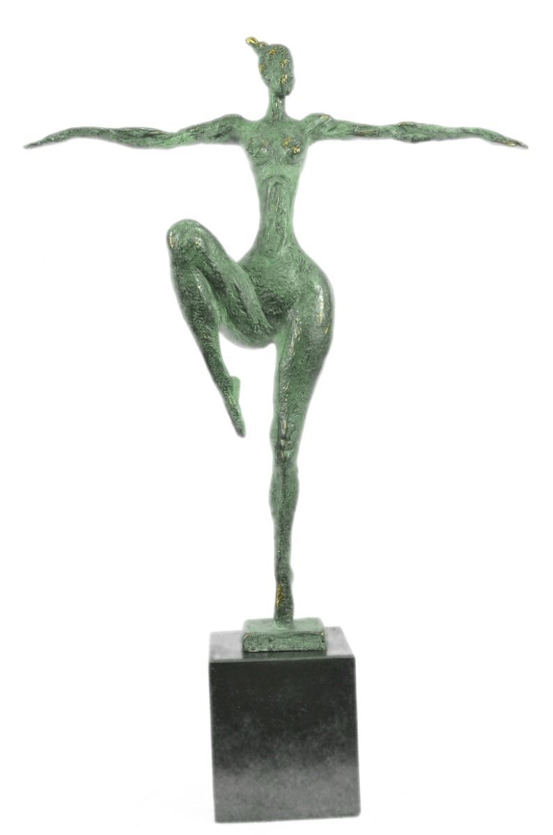 An Abstract Female Dancer Sculpture. You Can Just Tell This Is A Powerful Dancer In The Sharpness Of Her Position. This Wonderfully Curvaceous Woman Bears The Wide Hips Commonly Attributed To Femininity And Fertility. It Is A 100% Bronze, Cast Using The Lost Wax Method. It Stands Tall On A Black Marble Base. Bronze Dimensions With Marble Base: Height 22 X Width 14 inches. Weight: 13 Lbs.