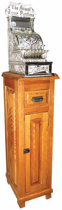 Contemporary Candy Store Cash Register Stand. Period quarter sawn oak and hardware. "CASH REGISTER NOT INCLUDED". 13 X 43 1/2 X 16 1/2 inches.