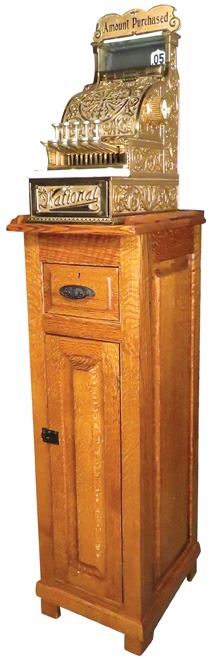 Contemporary Candy Store Cash Register Stand. Period quarter sawn oak and hardware. "CASH REGISTER NOT INCLUDED". 13 X 43 1/2 X 16 1/2 inches.