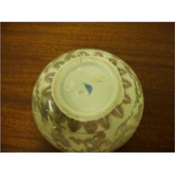 Contemporary Conchi Vase. Underglazed red with crysthamemum design. Bottom bears blue leaf mark.