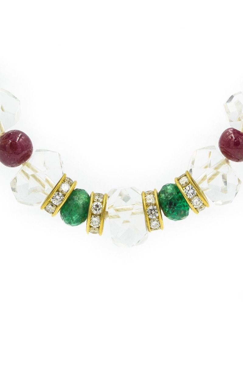 Model: Contemporary Rock Crystal Diamond Emerald And Ruby Necklace