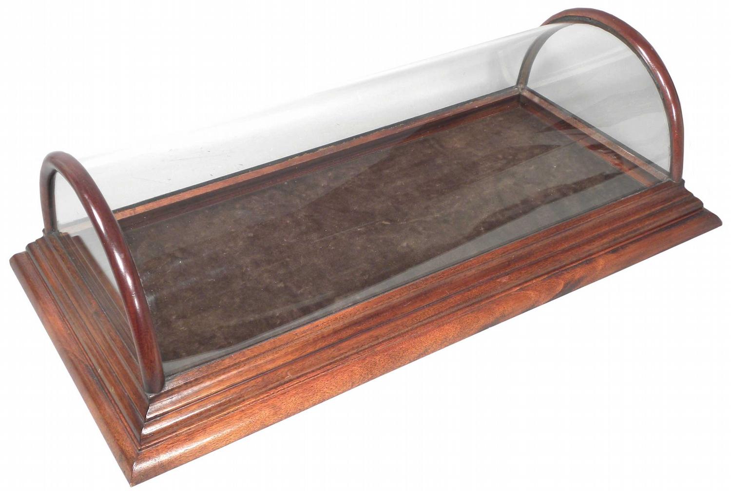 Contemporary Curved Glass Counter Top Showcase. Beautiful walnut cabinet. Excellent condition. 30 1/2 X 8 3/4 X 15 1/4 inches.