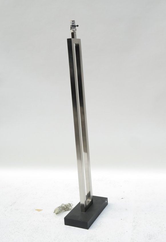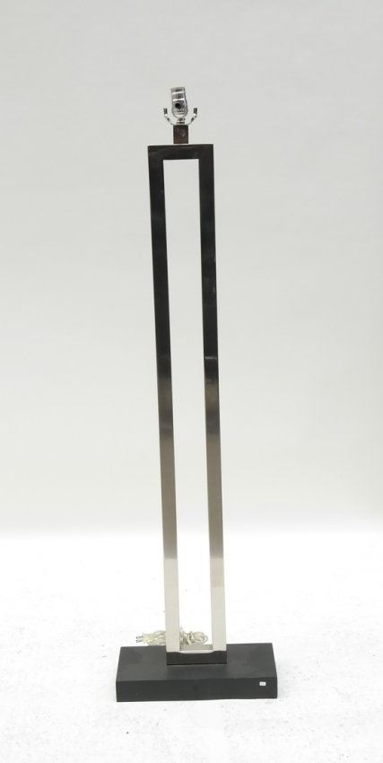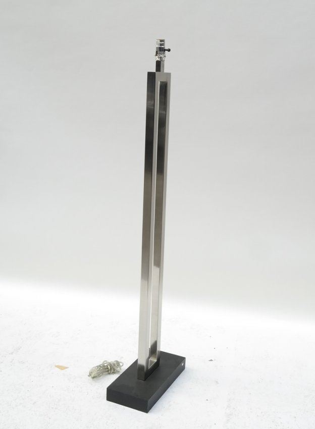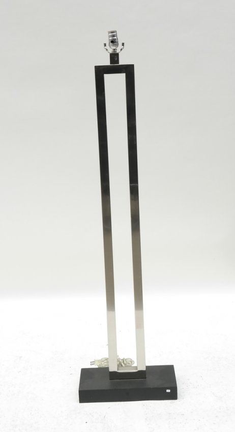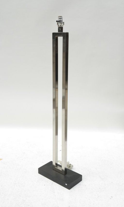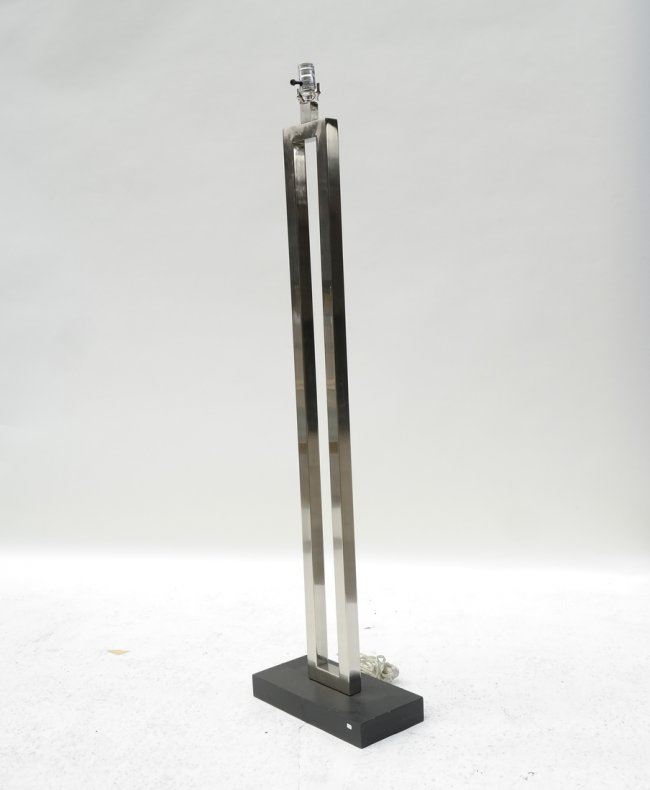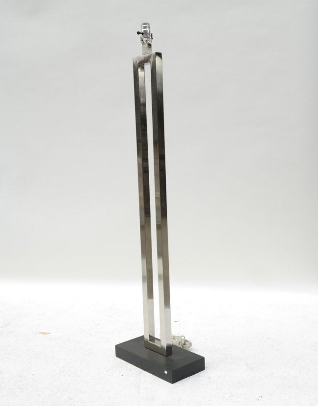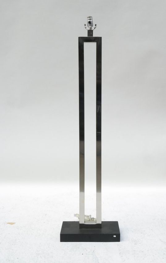 Square stock polished nickel post and painted wood base with matching nickel finial. [60" H]. A few light scratches. Mate to Lot 317.