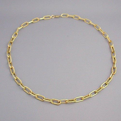 An extra heavy 18 kt. yellow gold chain. The chain measures approx. 22-1/2 in. long and is constructed of oval links which are polished and alternated with hand made and hand twisted oval links. The clasp is a modern lobster claw type.