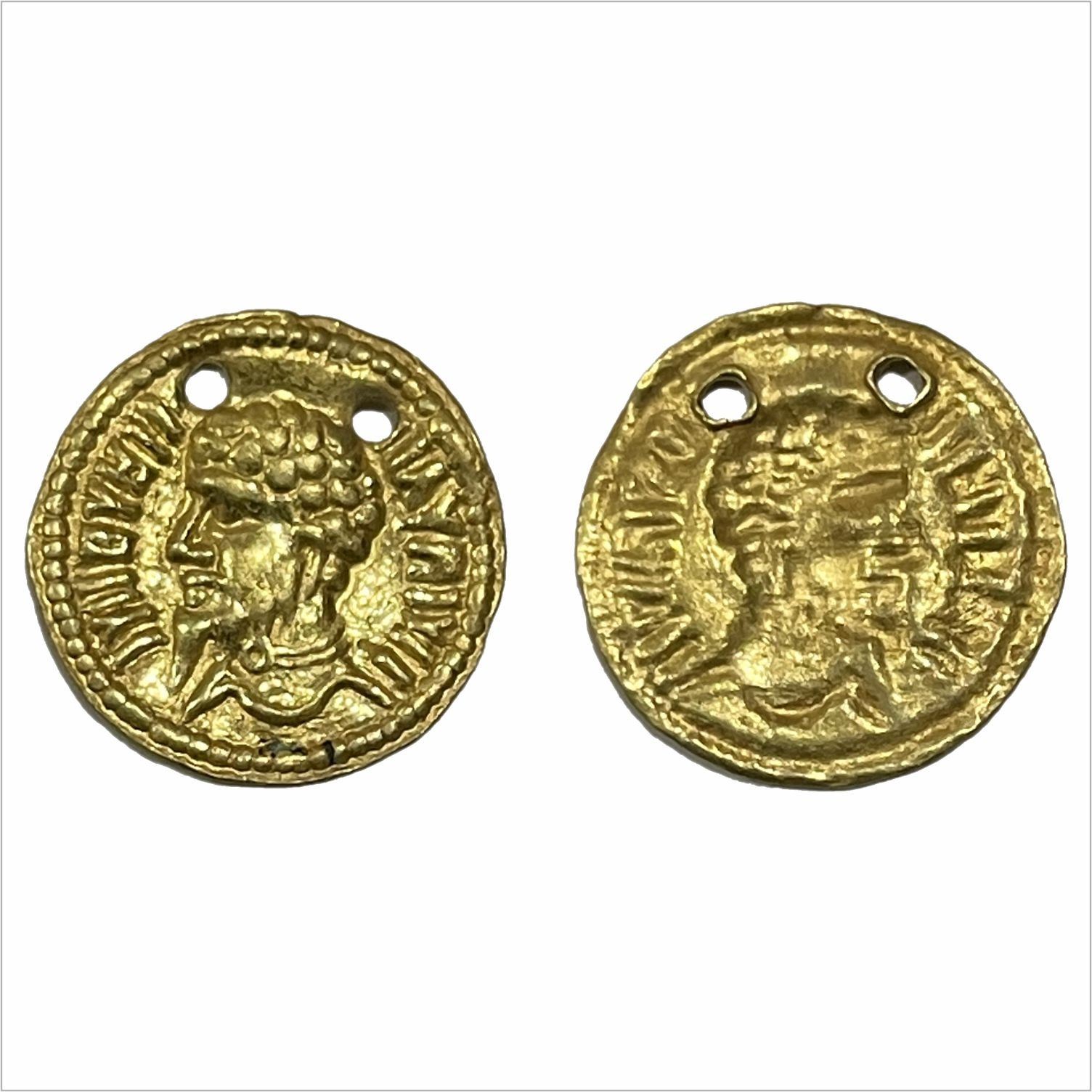 Contemporary Indian imitation of a Roman Aureus, probably based on designs of Septemus Severus or Lucius Verus (3rd century AD), 1.64g, Obv: Bears a profile beaded head to left, Repousse Bracteate.