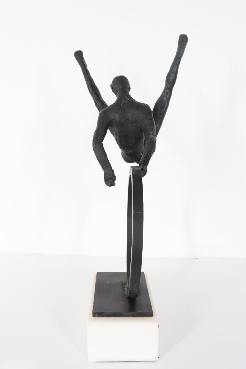 Iron mounted on marble base. 10 x 9 x 24 in.