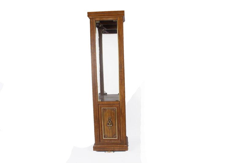 Contemporary Knicknack Showcase Walnut, two glass shelves, mirrored back, one door storage, lighted, measures 18 1/2"Wx12 1/2"Dx72"H.Walnut, two glass shelves, mirrored back, one door storage, lighted, measures 18 1/2"Wx12 1/2"Dx72"H.