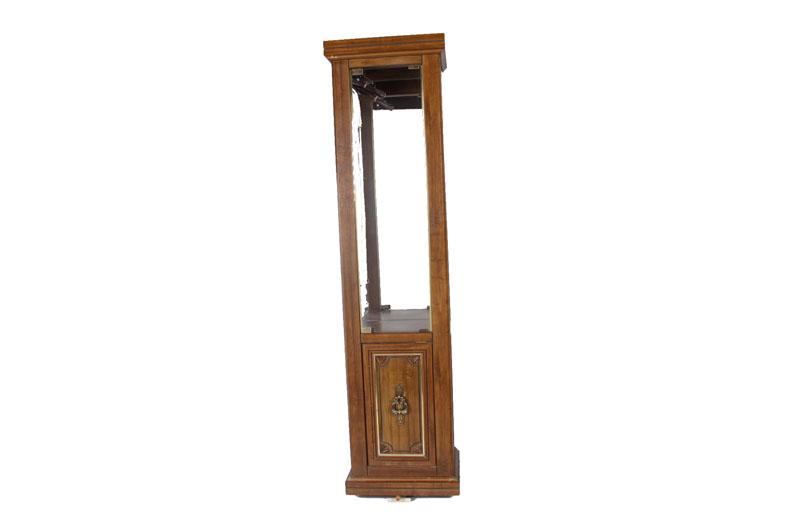 Contemporary Knicknack Showcase Walnut, two glass shelves, mirrored back, one door storage, lighted, measures 18 1/2"Wx12 1/2"Dx72"H.Walnut, two glass shelves, mirrored back, one door storage, lighted, measures 18 1/2"Wx12 1/2"Dx72"H.