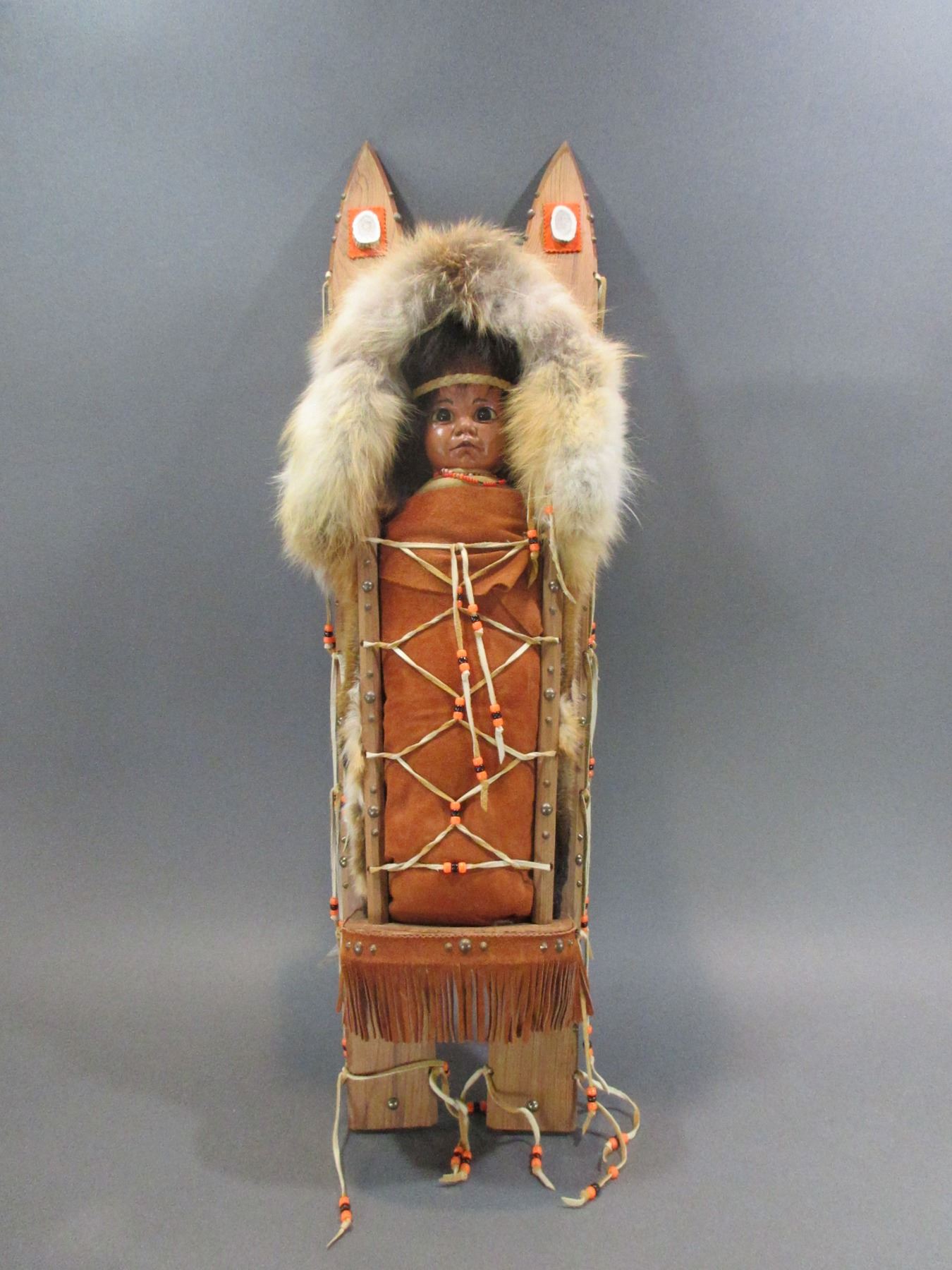 Contemporary Native Doll In Cradle Board- 40" X 10"