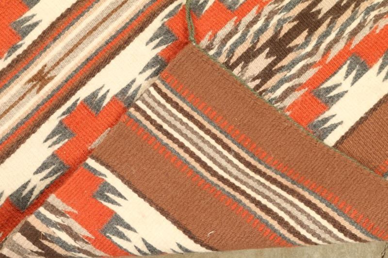 In Brown, Coral White And Gray With Stripes And Stair Step Design Measures 35"x26" In Excellent Condition