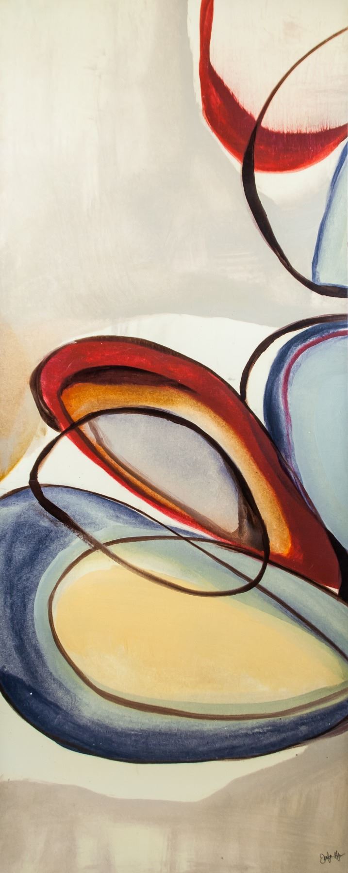 Oil on canvas. Featuring a abstract composition. Signed by the artist on the lower right corner. Artwork information label attached on verso. 183 x 76 cm (72.0 x 29.9 inches).