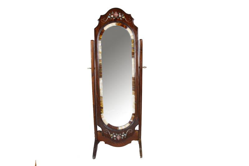 Contemporary Pier Mirror Hand painted with stained glass borders on mirror, measures 28"Wx22"Dx71 1/2"H.Hand painted with stained glass borders on mirror, measures 28"Wx22"Dx71 1/2"H.