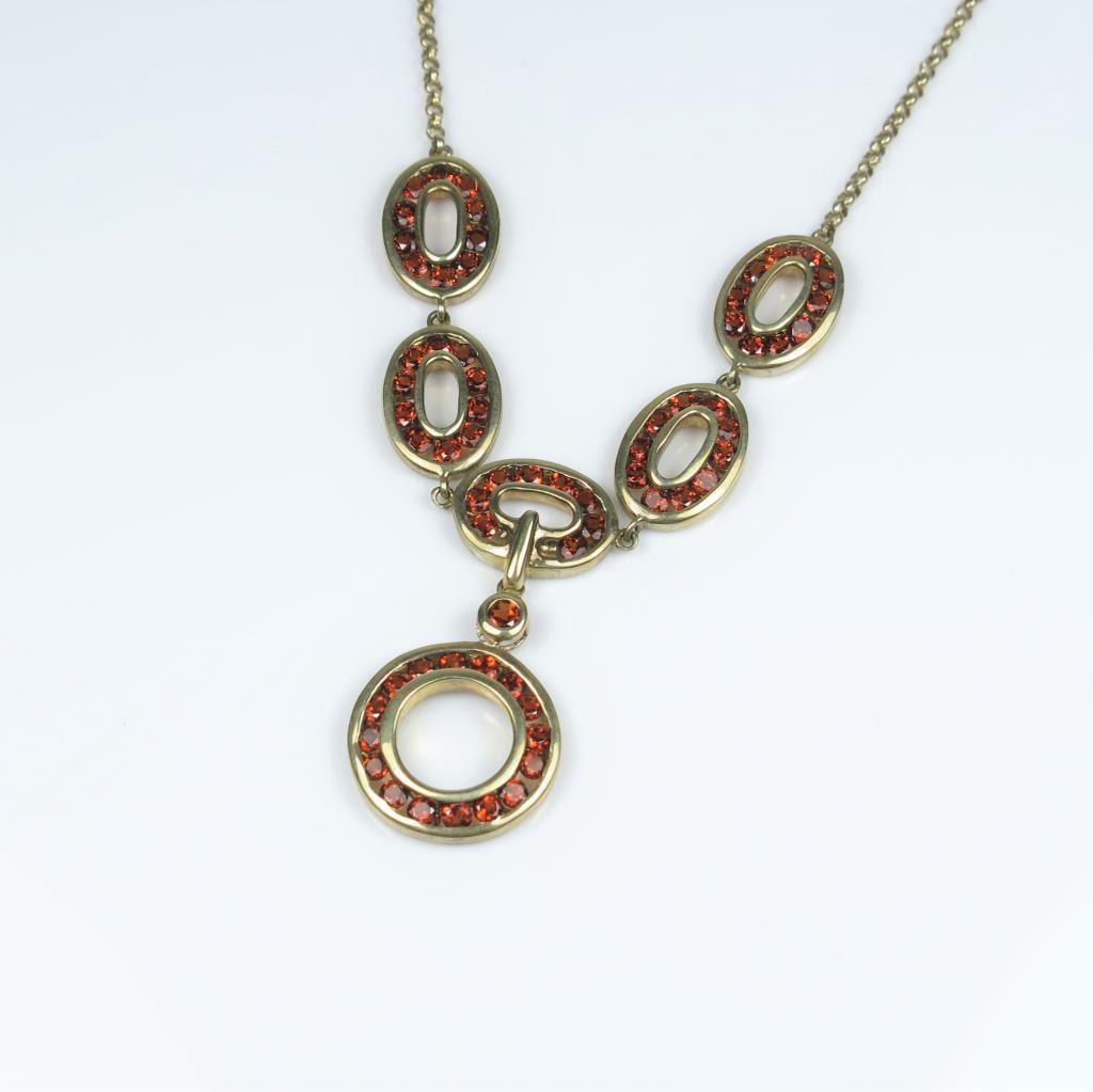 Contemporary Red Garnet Circle Design Necklace channel set with approx. 4.00 carats in fine Garnets set in 10 Karat yellow gold. Estimates $1,000-$1,500