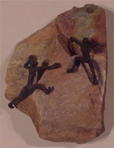Contemporary School THE ROCK CLIMBERS, 1999, cast metal sculptures mounted to rock, 11" h, 7 1/2" w, 2 1/2" d, signed and dated.