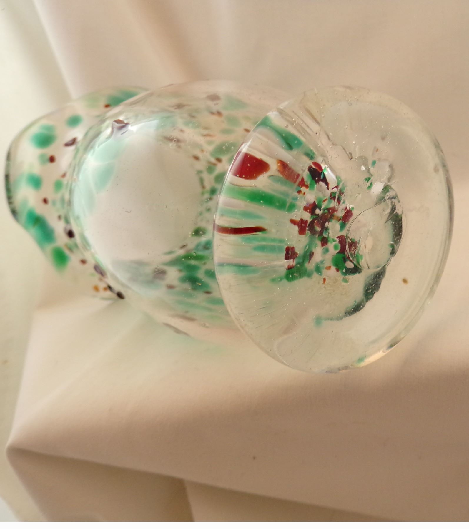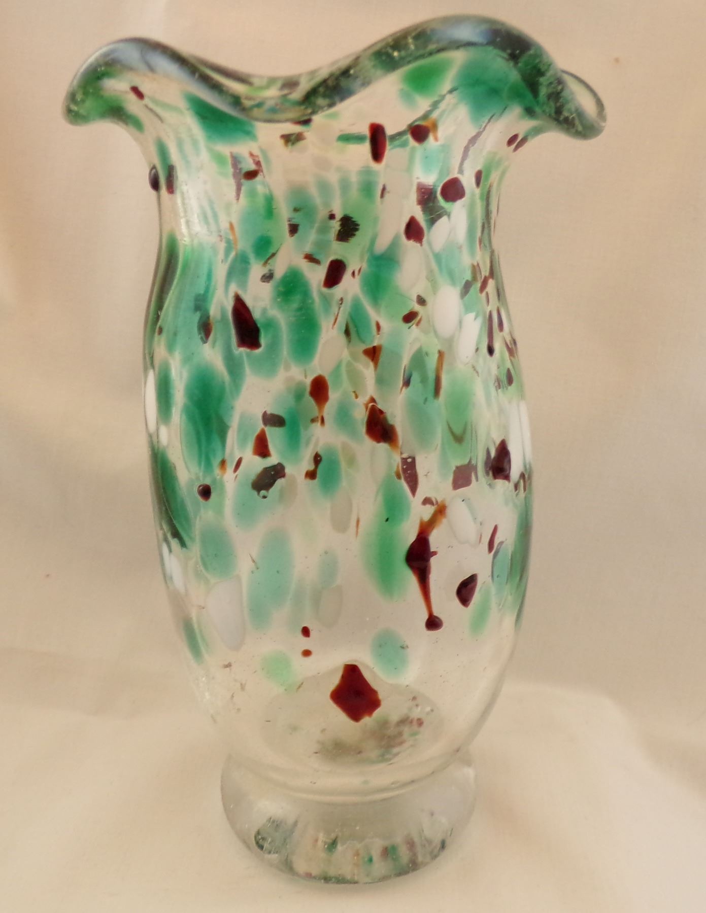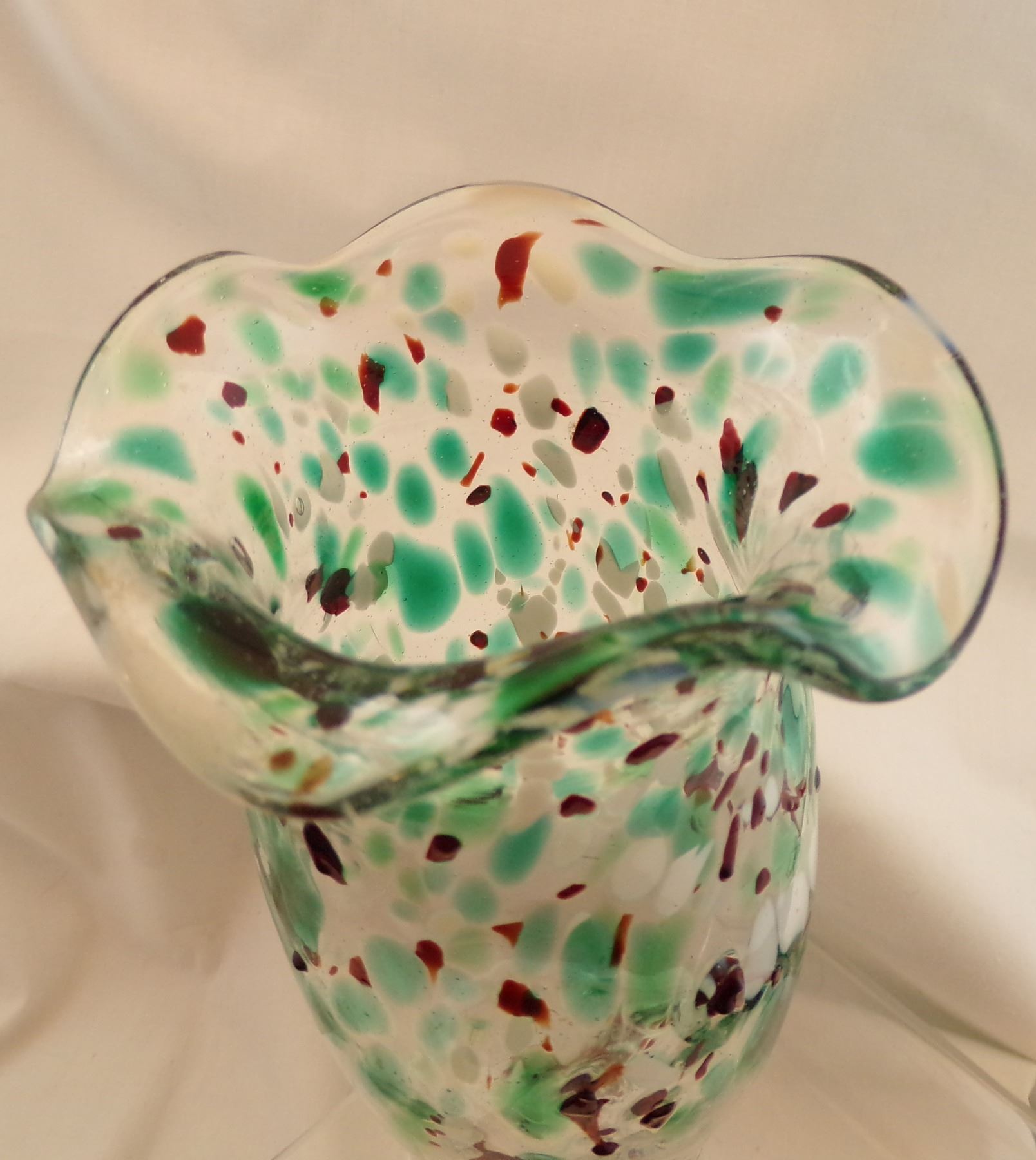 Contemporary Spatter Glass Ruffled Vase, signed on the bottom, measures 7''H, polished pontil
