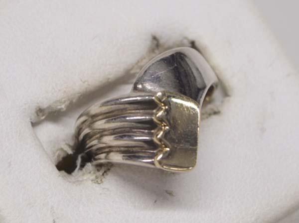 Contemporary Sterling Silver & Gold Ring. Size 6.5. Buyers Pay Actual Shipping and Handling Charges(see terms and conditions for more information).