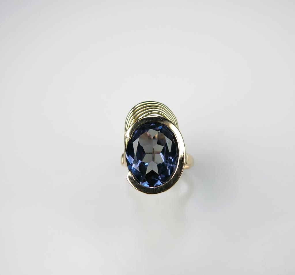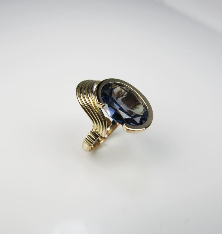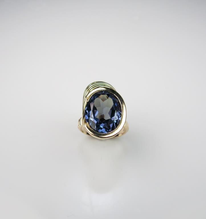 Contemporary Style Alexandrite Ring with 10.00 carat created alexandrite set in 14 karat yellow gold. Retail $1,000-$1,500 Estimate $800-1,200
