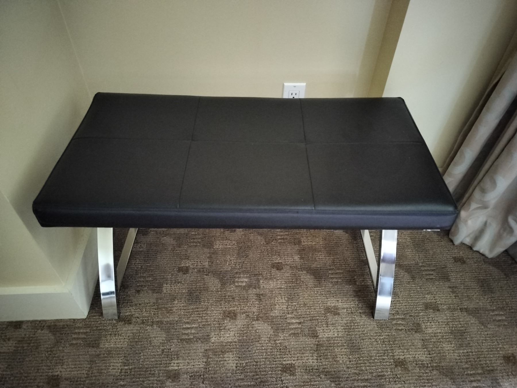Black cushioned metal base bench - 18" tall x 32" wide x 16.5" deep