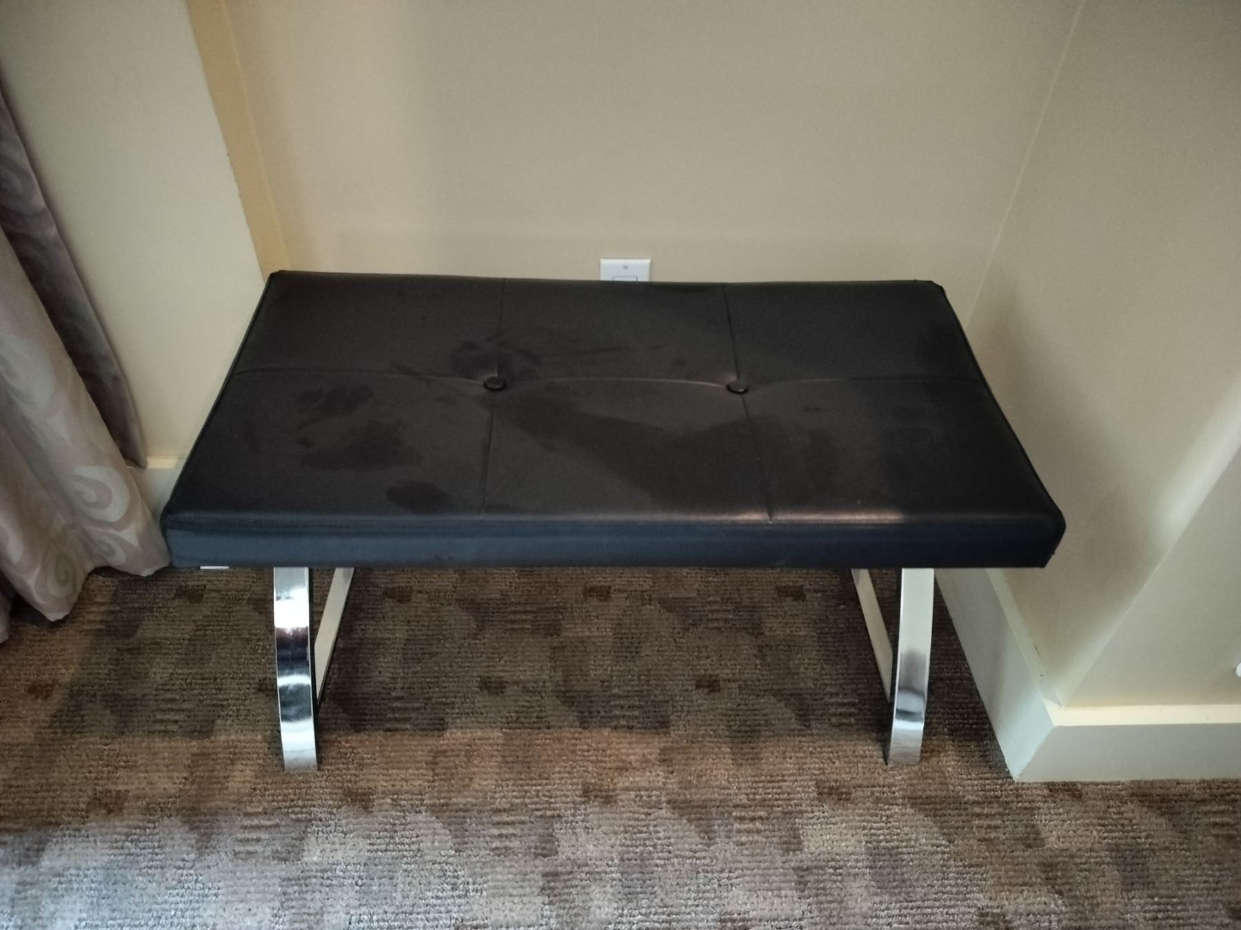 Black cushioned metal base bench - 18" tall x 32" wide x 16.5" deep