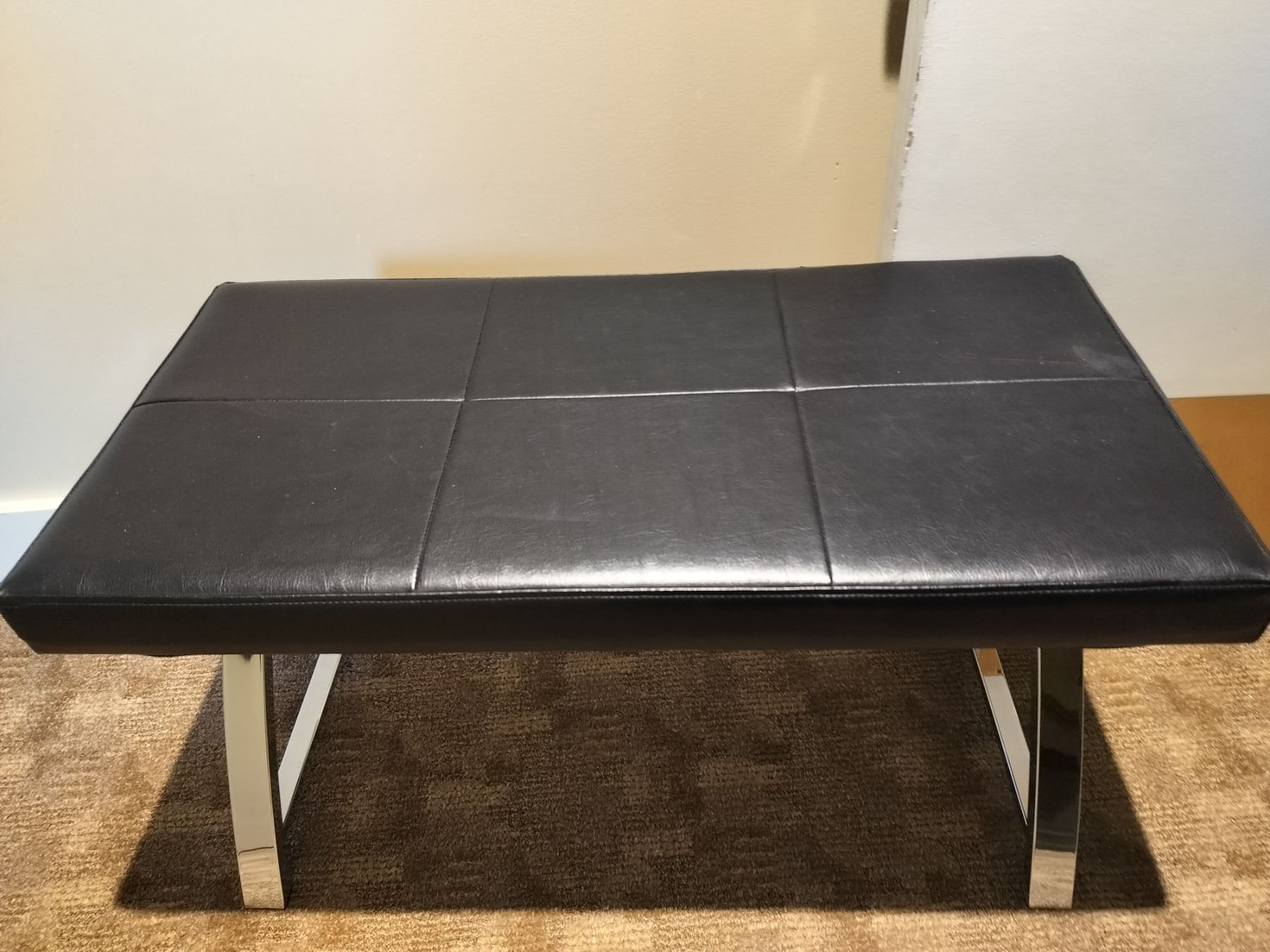 Black cushioned metal base bench - 18" tall x 32" wide x 16.5" deep