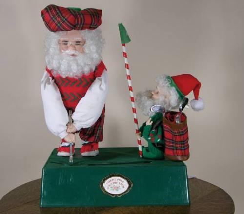 Contemporary animated Santa Claus (North Pole Country Club), 12 x 18 inch base, 2 foot tall, electric, works.