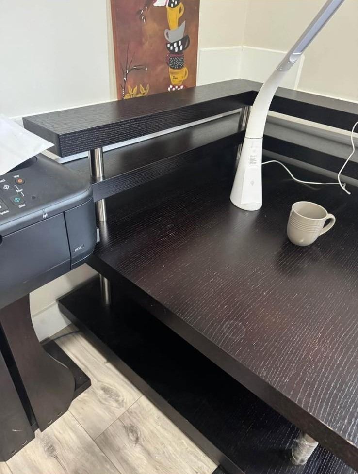 Contemporary office corner desk - approx. 31in tall x 38in depth x 38in. Pickup in Surrey via appointment.