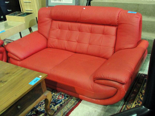 Contemporary red leather loveseat