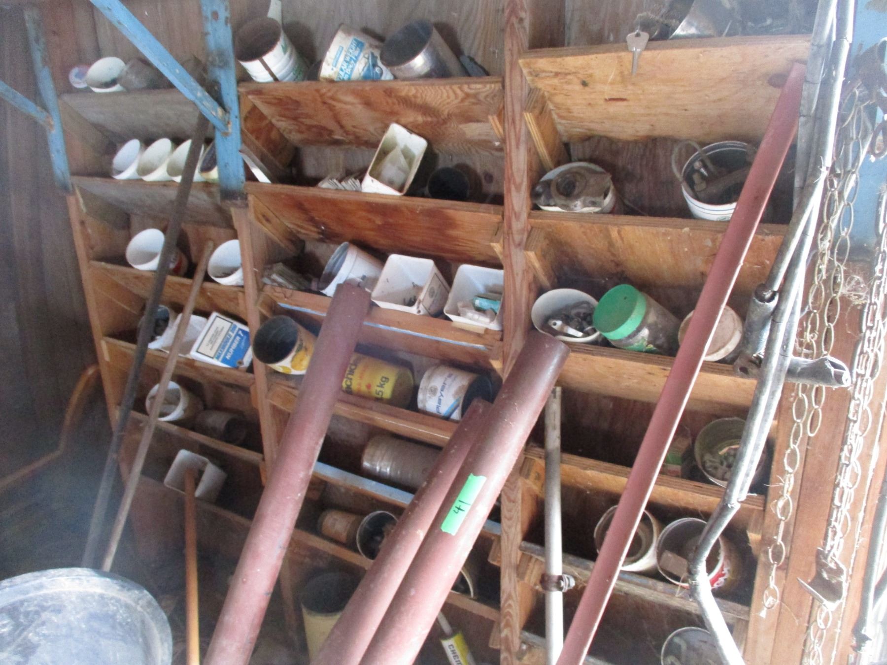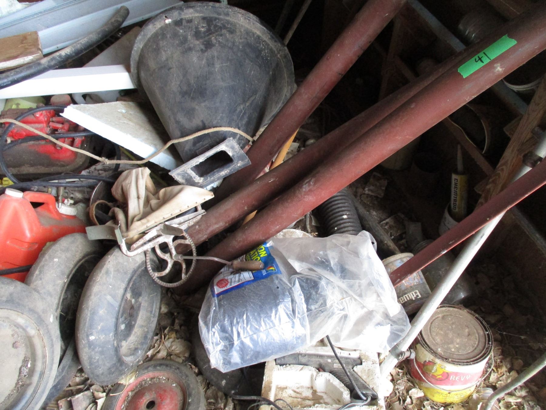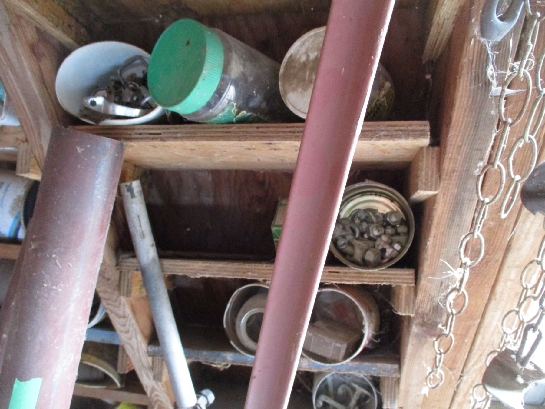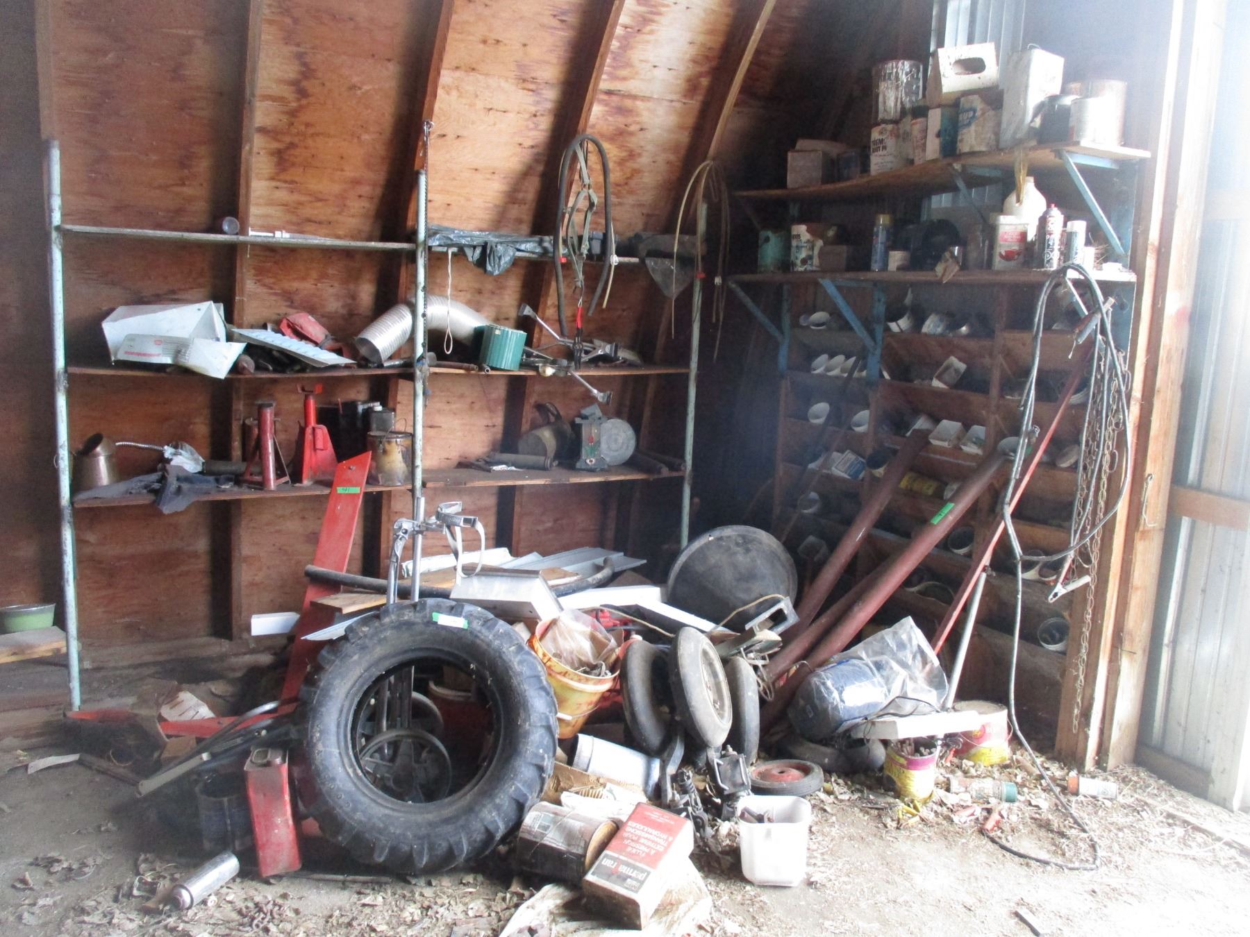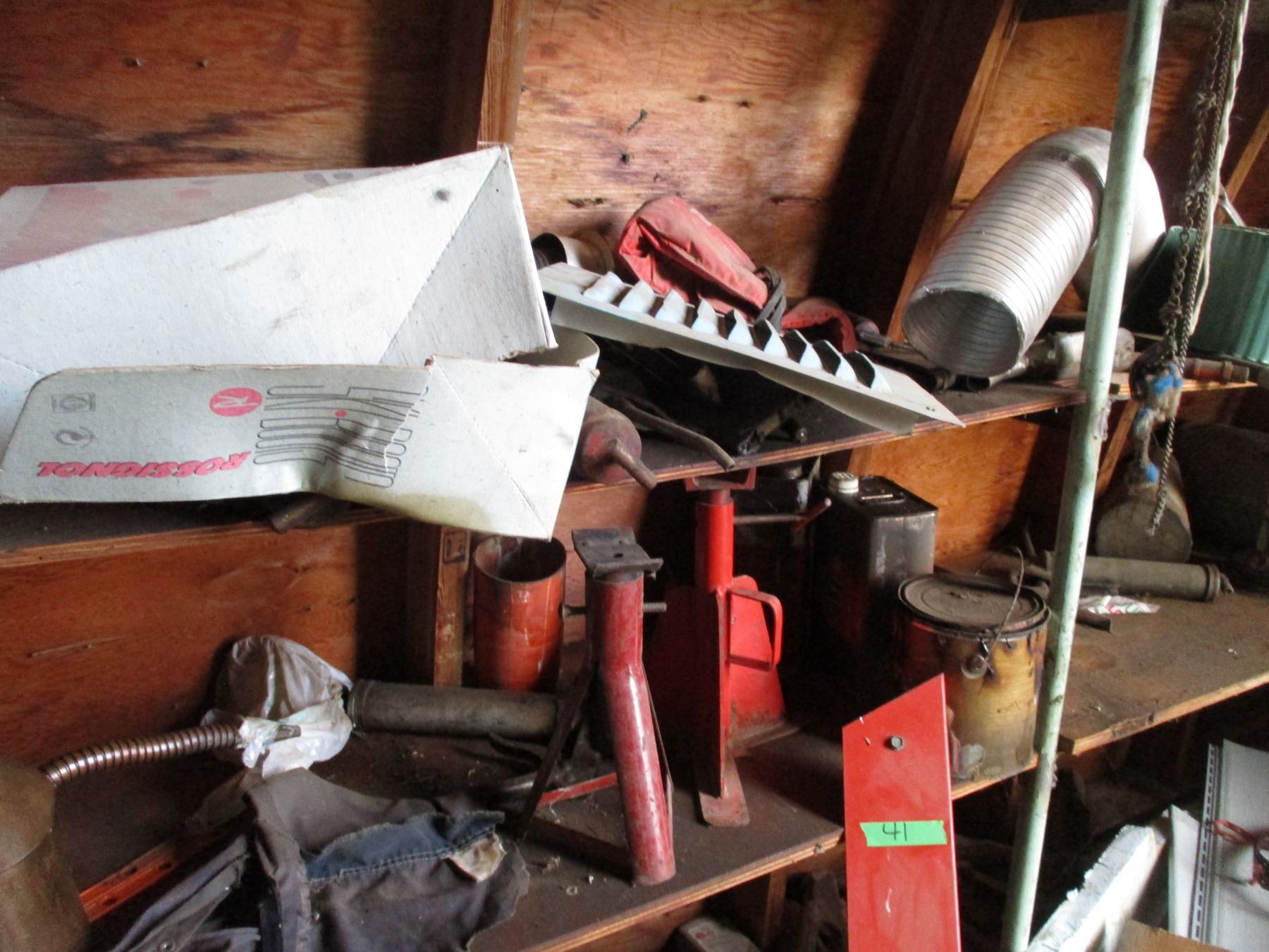 Contents - Tires, Jack stands, oils + sprays, nuts + bolts + misc