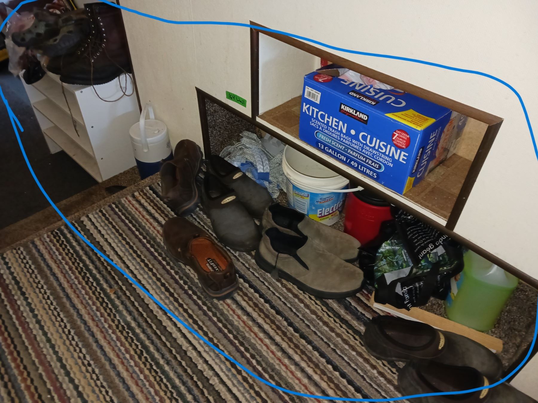Contents in the Blue Circle + Shoe Shelf and Contents
