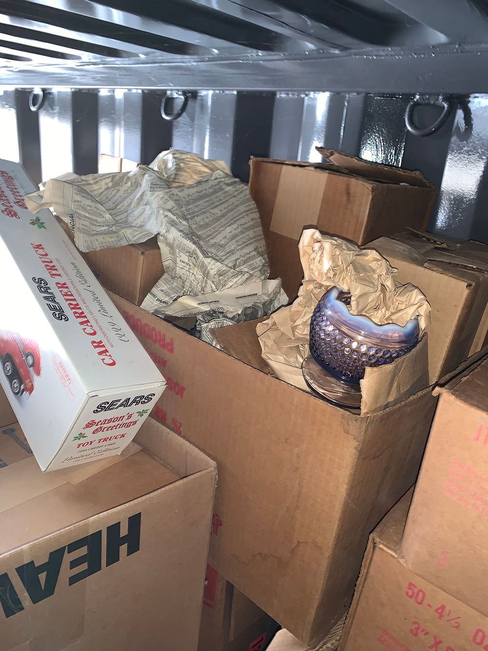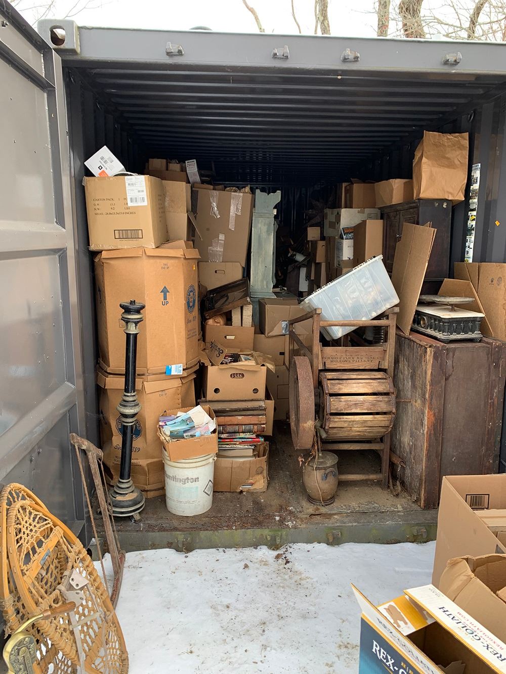 Estate discovery contents of an entire storage container, including unopened crates of Westmoreland glass, and a very rare farm implement mechanical treadmill that would be animal powered. The owner’s originally paid over $15,000 for the contents at our William Reil Estate Auction in Goshen, CT. This was a record breaking auction, with many of the Westmoreland glass containers selling for over $1,000 each. This container is filled with treasures all from this record breaking auction! Located in Litchfield, CT.