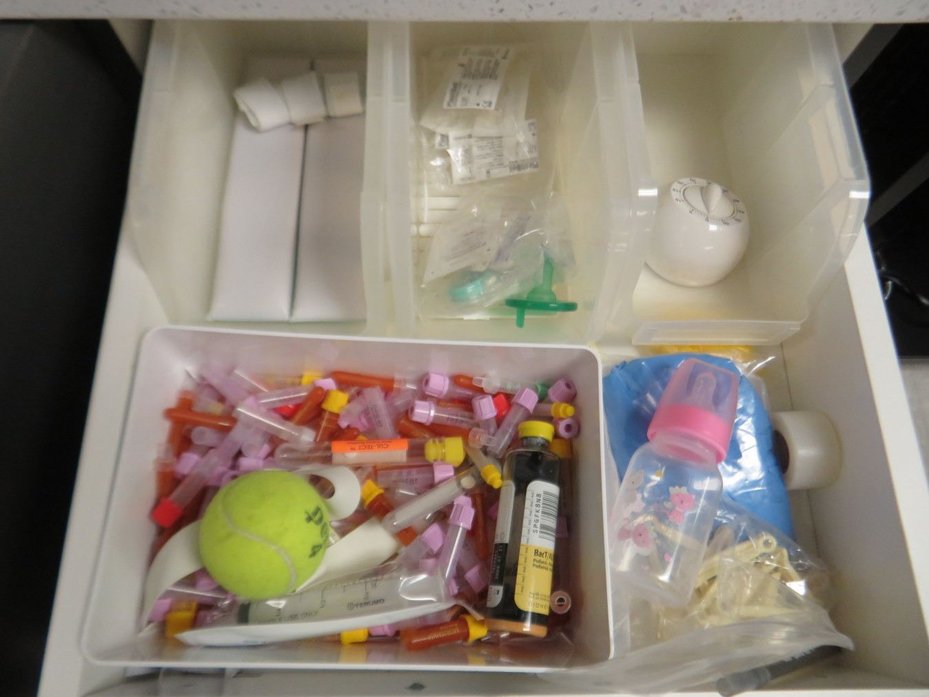 Contents of Drawer w/Cotton Balls, Lab Tubing & Sponges