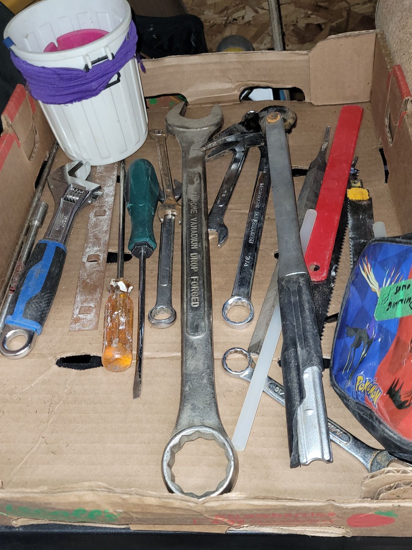 Contents of Shelf | Flat of Tools | Cork Board | Foot Pump