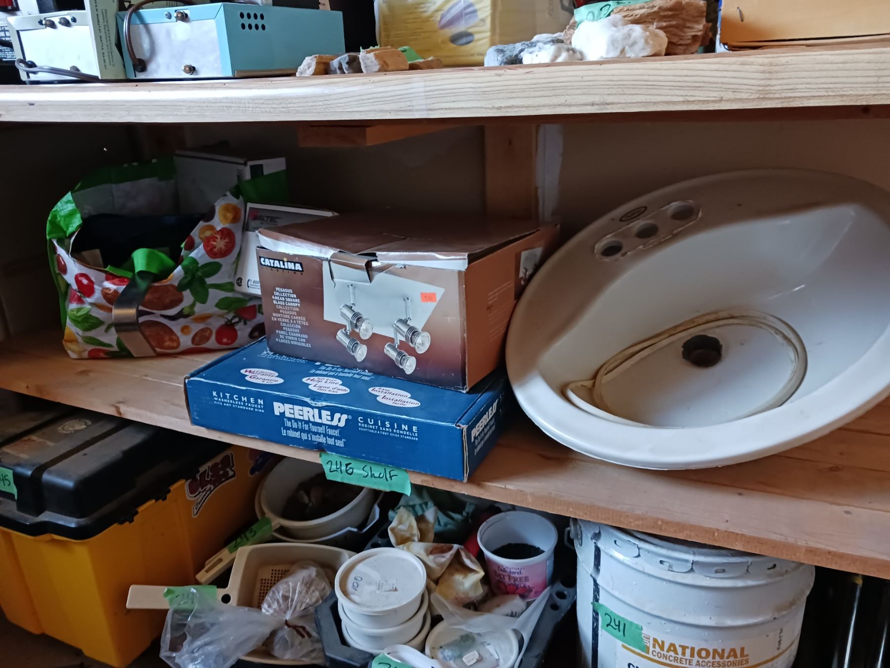 Contents of Shelf - Peerless Kitchen Faucet, Lighting, Bathroom Sink + Bag