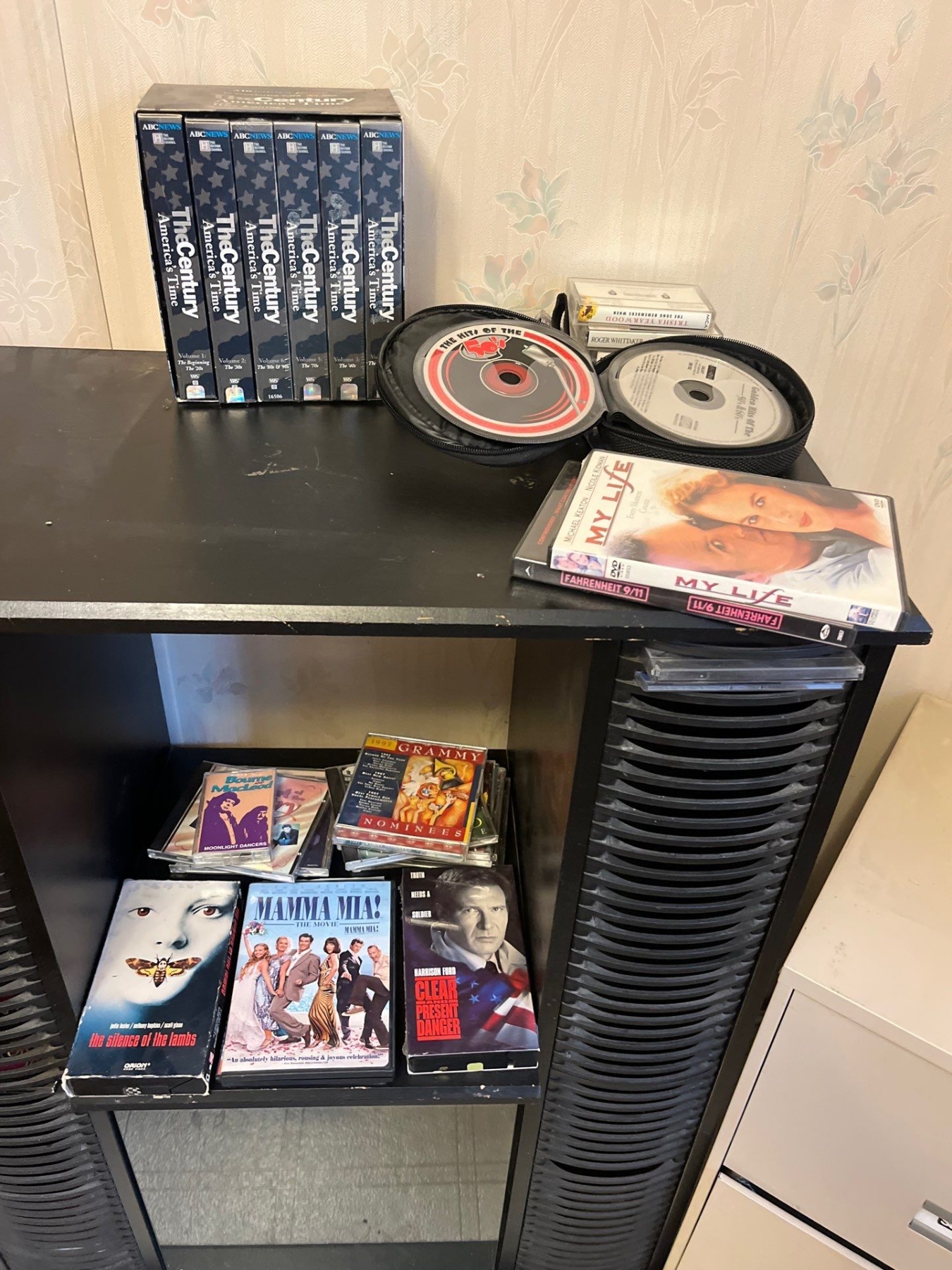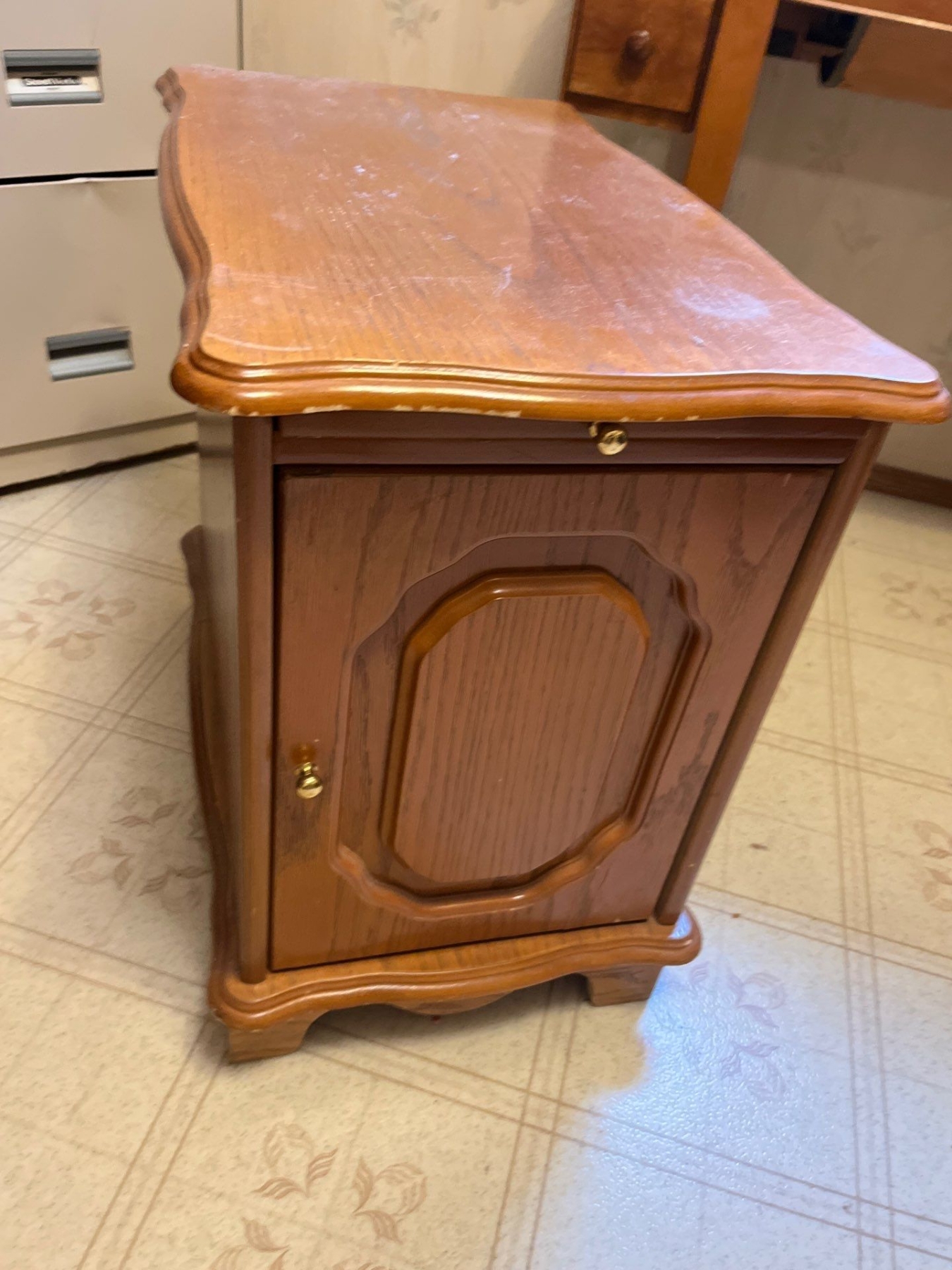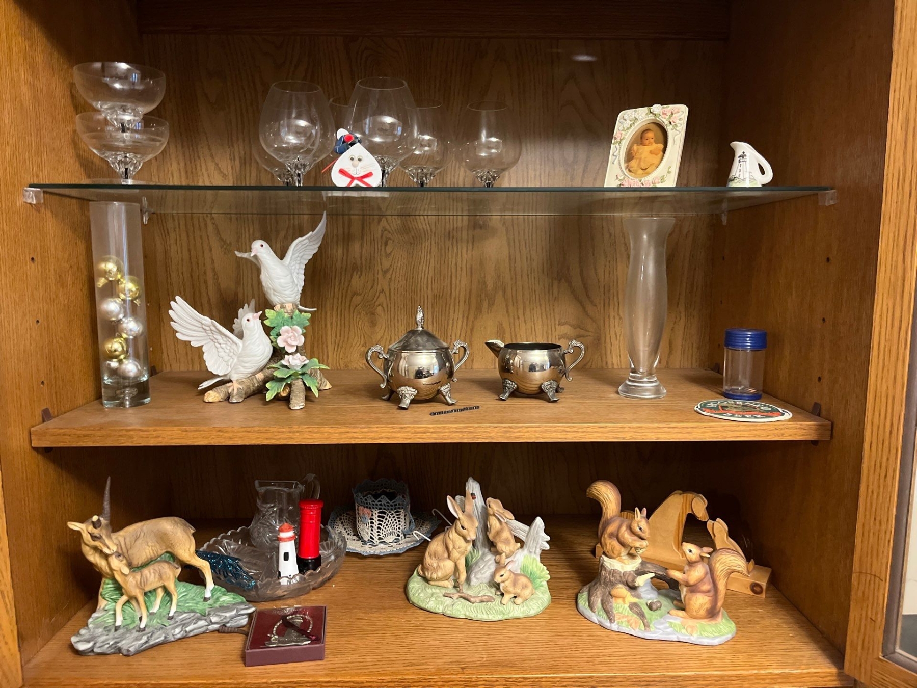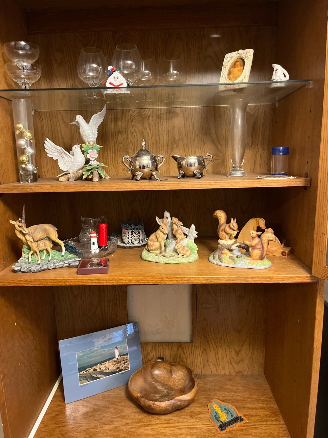 Contents of office, including desks shelving units everything in the shelving units, and a number of small collectables in the glass door shelf, not including sewing machines