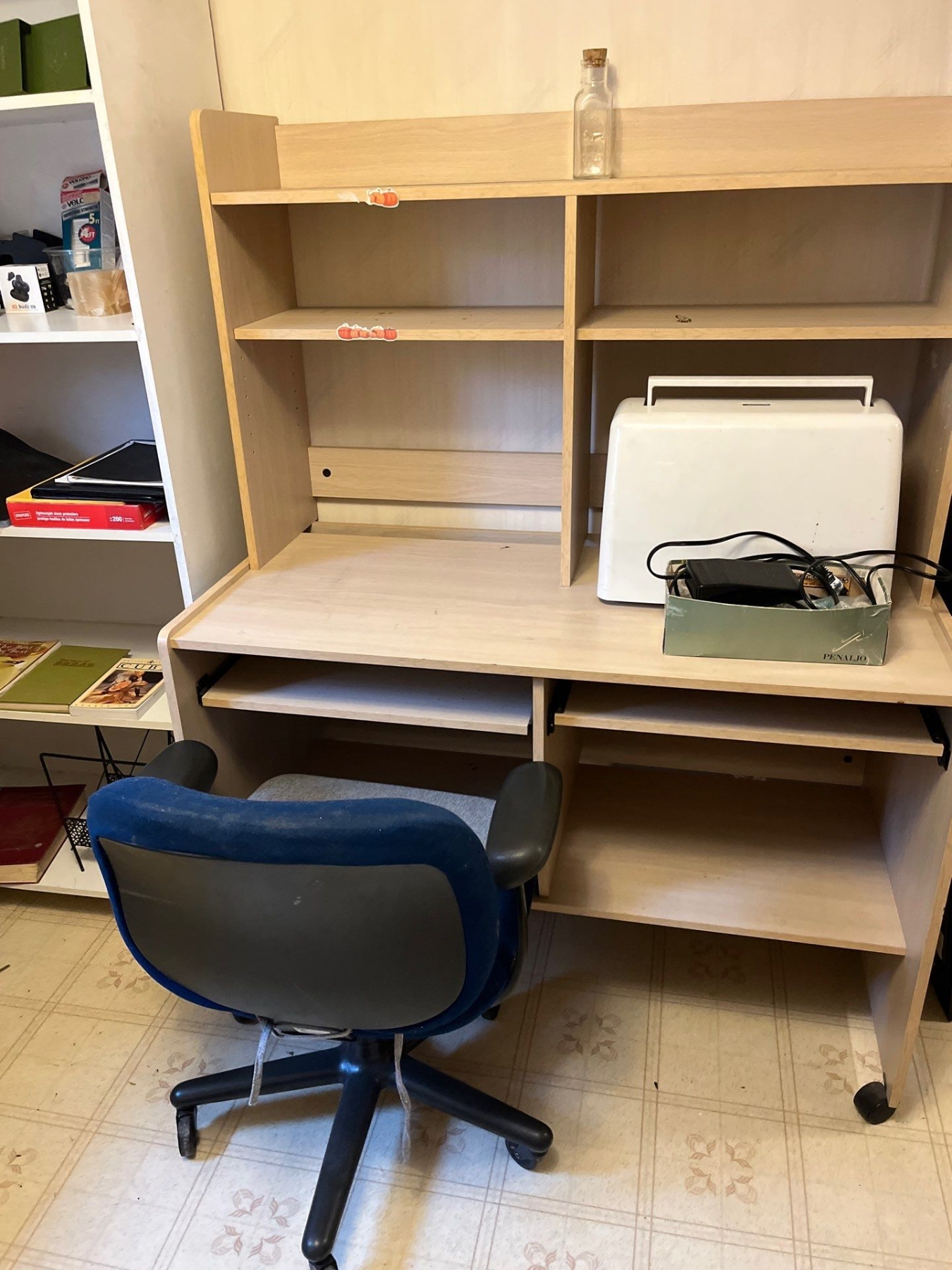 Contents of office, including desks shelving units everything in the shelving units, and a number of