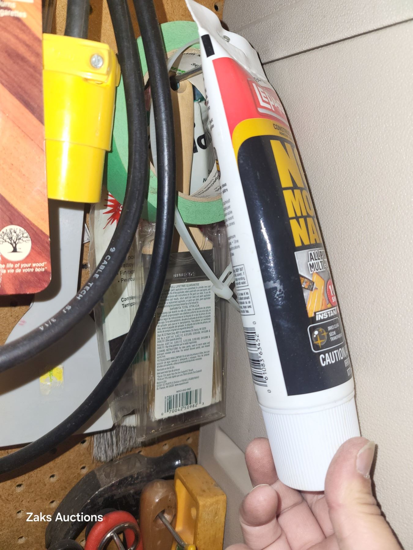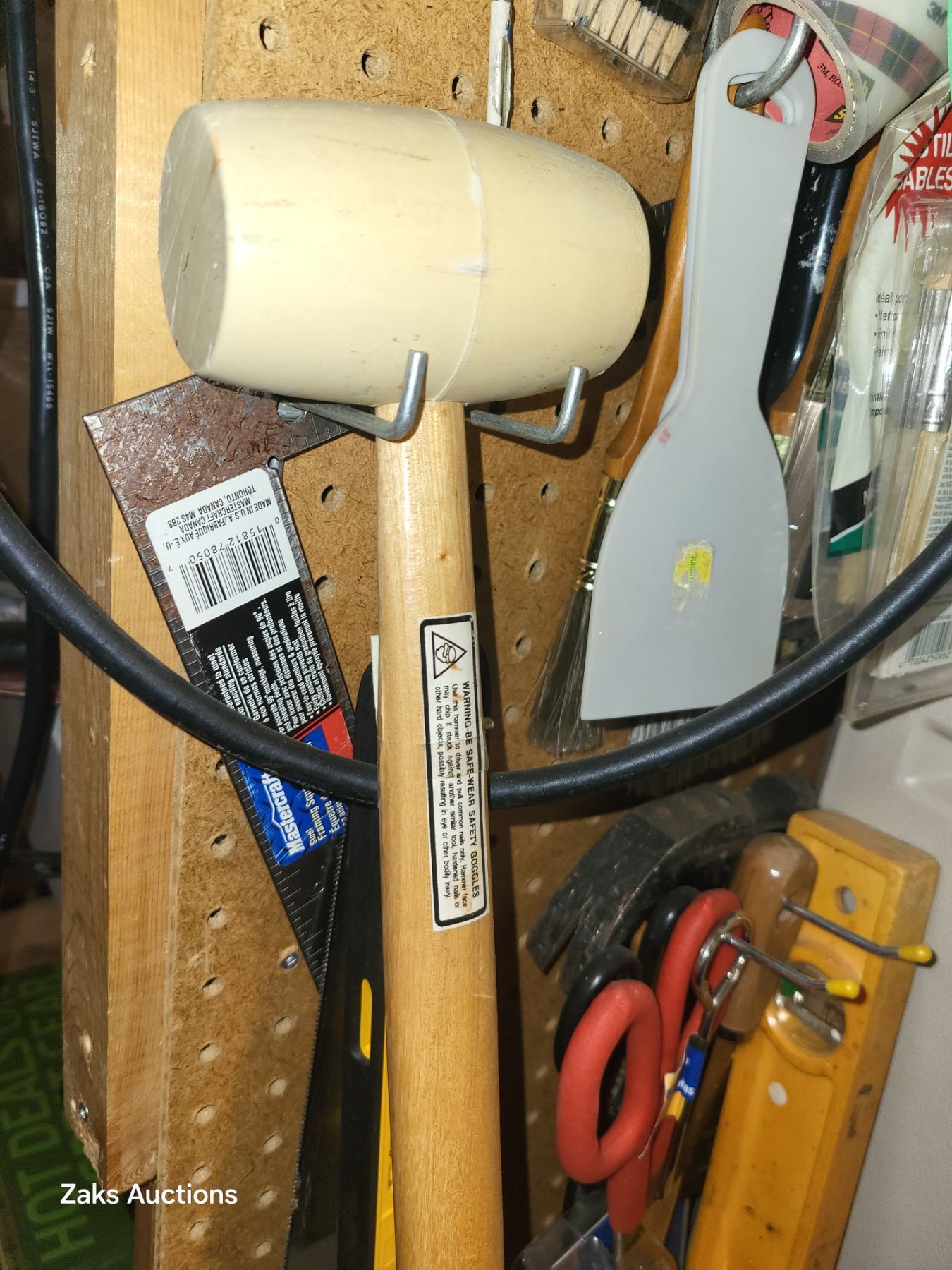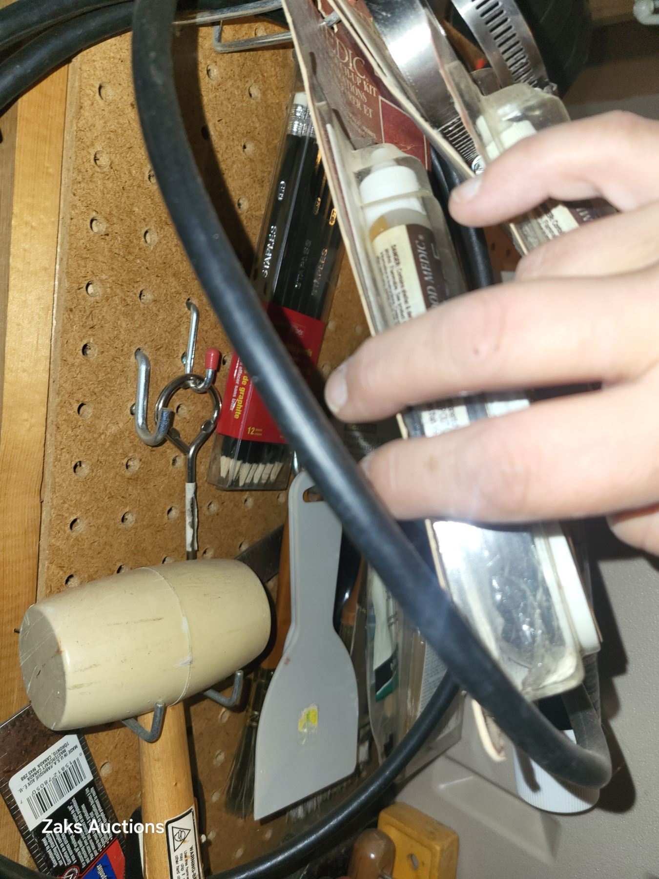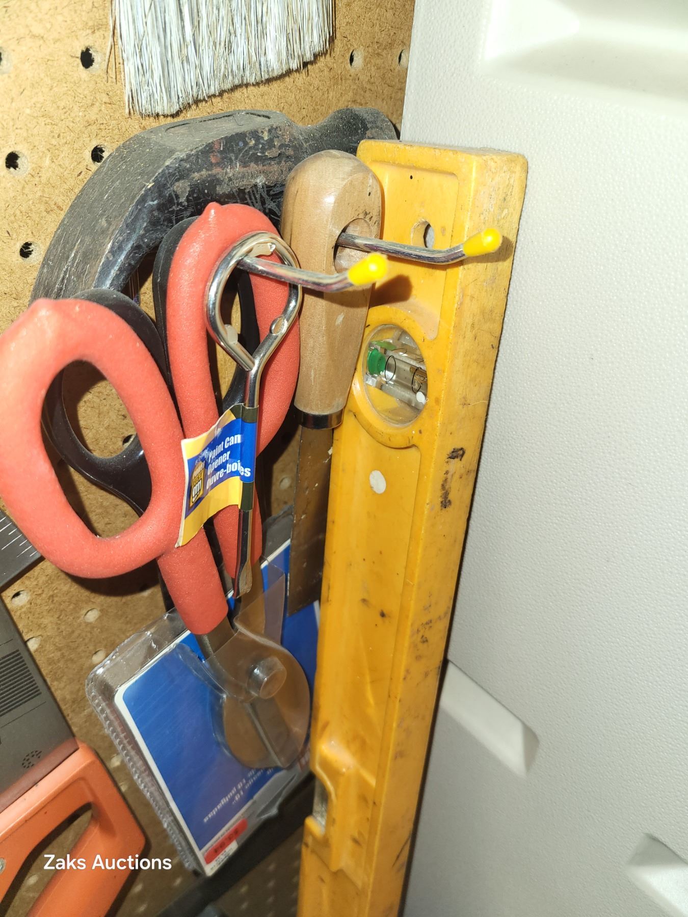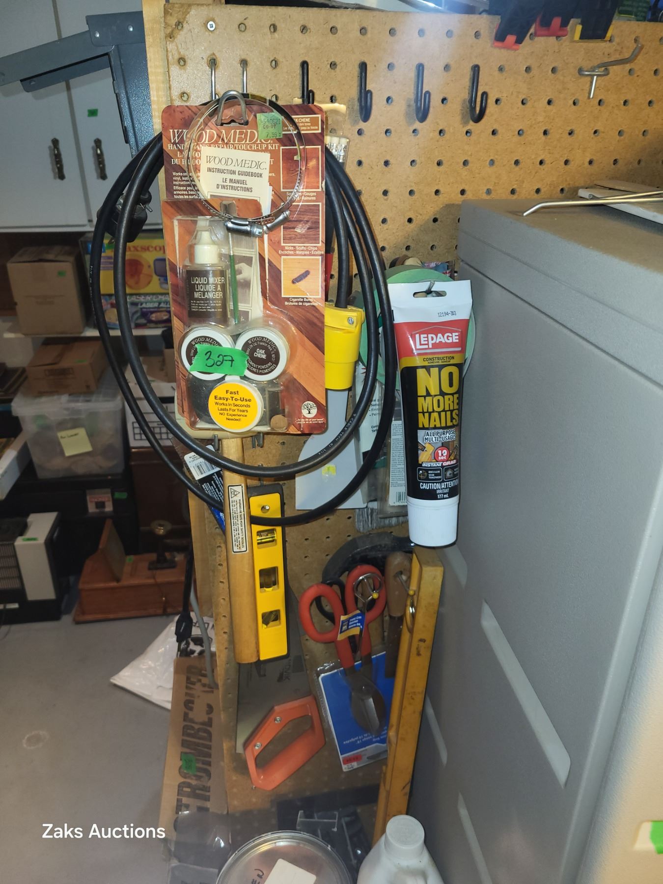 Contents on Pegs Beside the Plastic Storage Cabinet