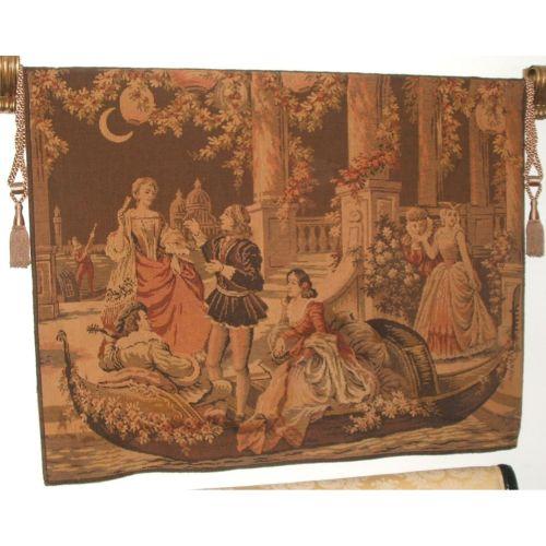 Continental. Probably Italian. Late 19th century. Mixed textiles. Depicting several courting couples departing on a gondola in what looks like Venice. 39" high by 50" wide.