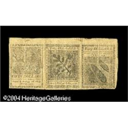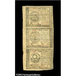 Continental Congress Issue September 26, 1778 Uncut Str <B>Continental Congress Issue September 26, 1778 Uncut Strip of Three Extremely Fine.</B></I> A $30, $40, and $50 note on a well margined strip of three. The strip appears to have been circulated lightly in this form, but it has remained quite clean, particularly on the face and all the signatures are strong. Continental multiples are extremely scarce. <BR><BR><B>Important notice:</B> Heritage usually auctions material at the rate of 200-250 lots per hour. On some occasions eBay Live bid software or the Internet may not be able to keep up with the pace of the auction. We recommend placing a realistic absentee bid now as insurance to avoid disappointment. Occasionally the auctioneer may eliminate or reject an eBay Live bid, and the auctioneer may also reopen a lot after the close of the eBay live bidding (usually because we missed an audience bid), and may reject your bid even if it shows you as the winning bidder. By bidding via eBay Live, you agree that Heritage may award the lot to another bidder at its sole discretion under the circumstances described above or any other reasonable circumstances. Since eBay bids are not shown to us until we open the lot on the floor, we treat those bids just like floor bids. In most cases the floor responds before the eBay bid is presented to us, due to Internet lag time, so for consistency we have made it a policy that floor bids are always considered first over tie eBay live bids. Also please note that all Heritage lots purchased through eBay Live carry a 20% Buyer's Premium. Please make sure you read the Terms and Conditions before you bid. This lot is being auctioned in conjunction with a live floor auction by Heritage Galleries & Auctioneers. All final auction and invoice information will be supplied by Heritage Galleries & Auctioneers, and all other information should be considered preliminary. Lot:15068