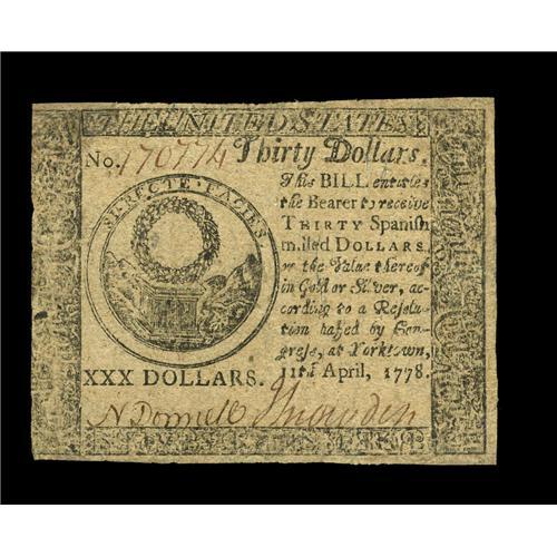 Continental Currency April 11, 1778 $30 Extremely Fine. Continental Currency April 11, 1778 $30 Extr