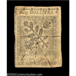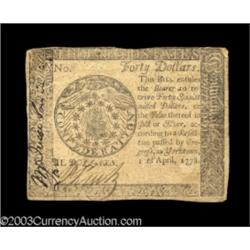 Continental Currency April 11, 1778 $40 Contemporary Counterfeit Very Fine.