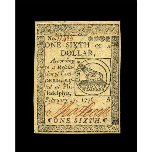 Continental Currency February 17, 1776 $1/6 Very Choice