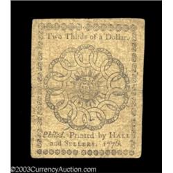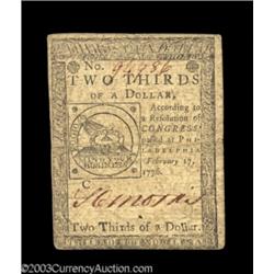 Continental Currency February 17, 1776 $2/3 Choice Very Fine.