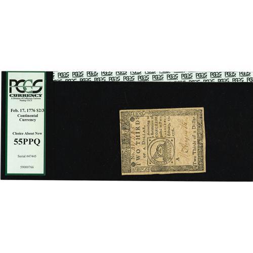 Continental Currency February 17, 1776 $2/3 PCGS Choice