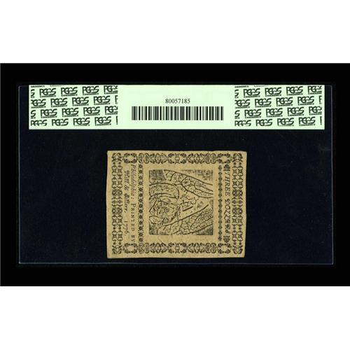 Continental Currency February 17, 1776 $3 PCGS Choice A