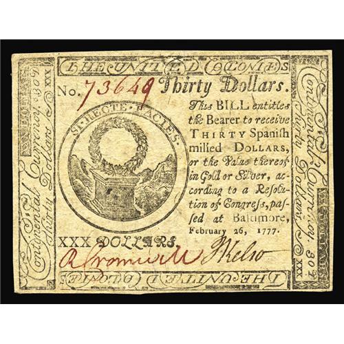 Continental Currency February 26, 1777 $30 Choice About Continental Currency February 26, 1777 $30 C