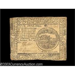 Continental Currency February 26, 1777 $4 Choice Very Fine.